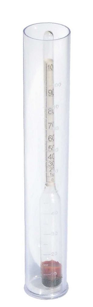 Flytande alkoholmätare. Skala 0-100%. Mätresultatet blir noggrannare med okryddade och starkare spritdrycker. Ej för vin, cider eller öl!