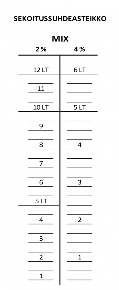100 ml measuring glass with normal ml scale and additional markings for mixing solutions at 2% or 4% ratios.