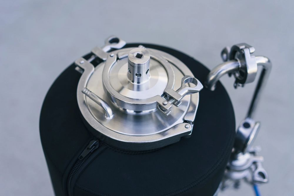 • 6" TC lid with fully welded chiller coil and with 3" TC mount for dry hopping, cleaning (CIP) and pressure relief